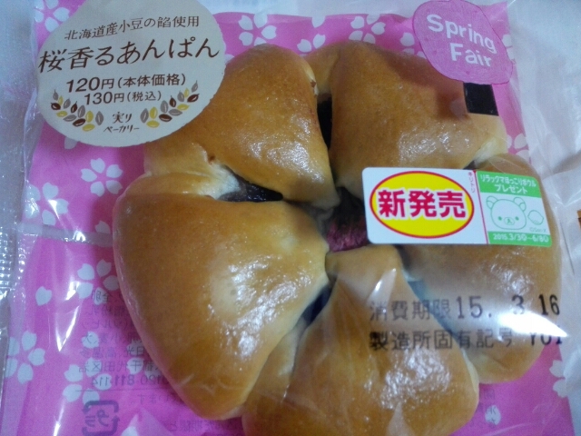 今朝は「桜香るあんぱん(写真)」を食べました。桜葉の練りこまれた餡はちょうどいい甘さです。中央の桜花の塩漬けのしょっぱみがいいアクセントになっていておいしかったです。カロリー控えめなので、カロリーが気になる人にもいいかもしれません。
