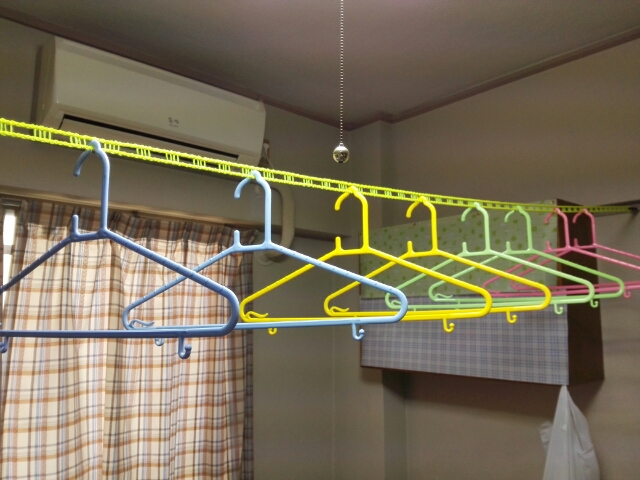 百均で物干しロープを買いました(写真)。ハシゴ型のロープでハンガーを穴に通して掛けるとずれないという優れものです。これまでは荷造り用のヒモを張っていたんですが、ハンガーが滑って洗濯物が偏ることがあったんですよね。これで隙間を作って干すことができて、乾きもよくなりそうです。久々のヒット商品の予感がします。