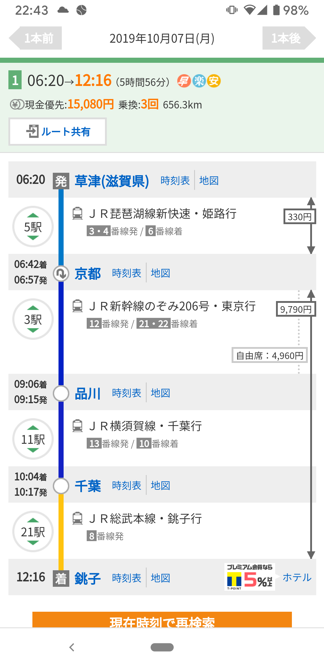 今日から出張で銚子に来ています。今日移動したんですが、なかなか時間がかかりました(画像)。最後の千葉から各駅停車に2時間というのがダメ押しでしたね。朝6時20分に草津駅を出て約6時間かかりました。