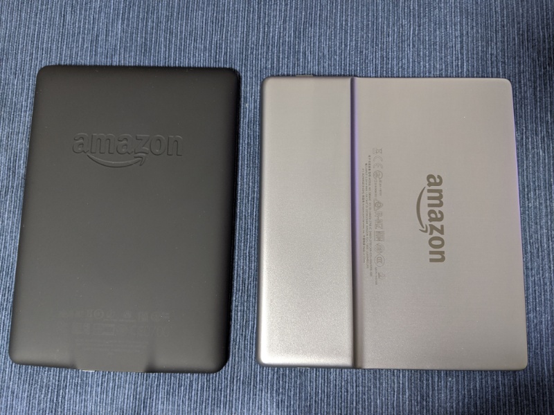 Kindle Oasisが届きました(Paperwhiteと比較【表】)(Paperwhiteと比較【裏】)。Kindle Paperwhite(第7世代)と比べると実測201.0gから実測186.5gと軽くなりました(Paperwhite第10世代と比べると重いです)。それなのに、画面は7インチと1インチアップ。ベゼルも狭くなってスマートな印象です。筐体も樹脂からアルミになっているので高級感がありますね(冷たいのと滑りやすいのは欠点です)。早速風呂でマンガを読んでみましたが、ページ送りもストレスなくスムーズでした。