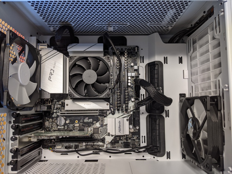 ポチっていた各種PCパーツが届きました。今回のサブPC(録画用PC)の更新は中身が5〜6年前のものなので、PCケース以外すべて更新します。見た目は変わりませんが、中身が全部変わります。CPUはPentium G6400です。第10世代Pentiumの最下位モデルです。録画と簡単なエンコードだけなのでこれで充分です。電源は煩わしいのでプラグイン(必要なケーブルだけ差し込む)タイプにしました。マザーボードは初めてASRock製のものを購入しました。拡張性とコスパで選びました。メモリはメインPCで使用しているものと同じものです。CPUクーラーはnoctuaのトップフロータイプのブラックモデルです。あの特徴的な茶色のファンを封印したモデルです。リテールクーラーでもいいんですが、こだわってみました。