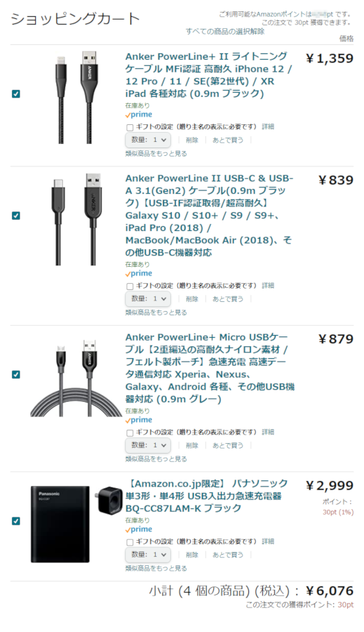 AmazonのブラックフライデーセールでAnkerのUSBケーブル各種とパナソニックのエネループ充電器を買いました。ブラックフライデーの名のごとく黒いものばかりになってしまいました。