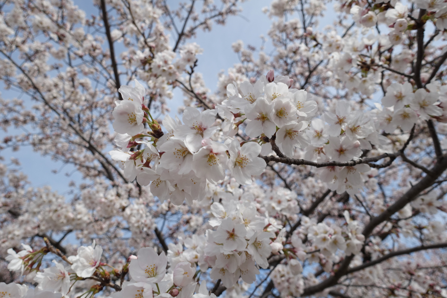 3週連続で旧草津川へ桜を見に行ってきました。先週が八分咲きくらいでしたが、今週はすでに散り始めといった様子でした。散歩していると暑くなるくらいの陽気でしたね。