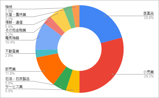 本日現在の所有日本個別株をまとめました。先月末から新たに武田薬品工業を100株購入しています。業種別配当金構成比は医薬品が新たに加わったのでバランスは改善しました。業種別時価構成比も同様です。以前は株主優待目的で買うことが多かったですが、最近は配当金重視にしています。