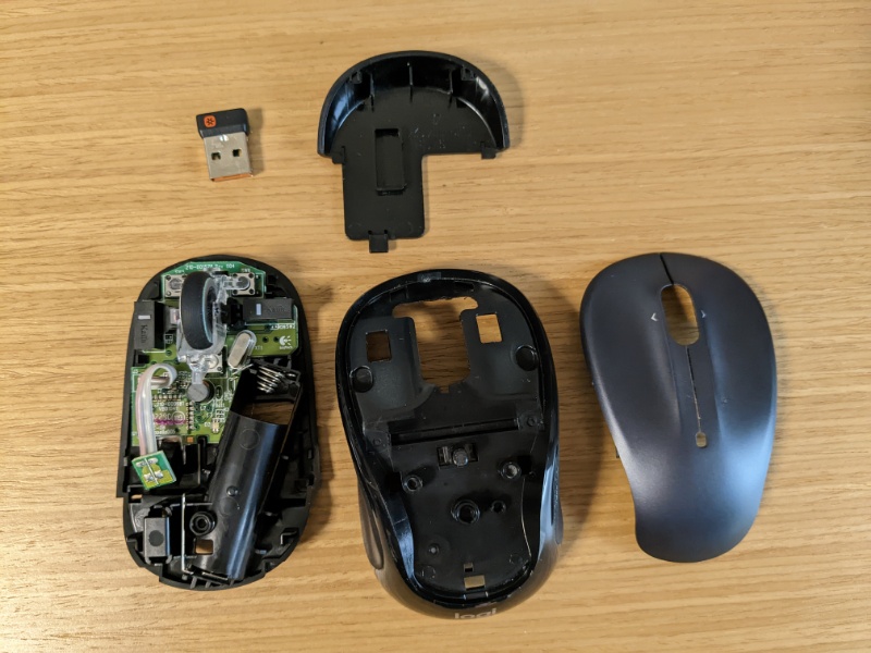 これまで使っていたM325tを分解して清掃してみました。細かいホコリをエアダスターで飛ばして、アルコールで少し拭きました。これまで強く押し込まないと反応しなかった左右チルトが軽く倒しただけで反応するようになりました。これは会社で使っているM325tの調子が悪くなった時の交換品としようと思います。