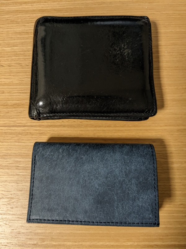 m+のストラッチョ スペリオーレというコンパクト財布を購入しました(写真)。かなり冒険しています。使いこなせたら楽しいだろうなと。写真は無印良品の二つ折り財布との比較です。無印良品の財布は2011年4月に3,980円で購入したもので、かなり長く使えています。来年の1月6日が一粒万倍日&天赦日&甲子の日&天恩日で開運日なのでそこで使い始めようと思います。
