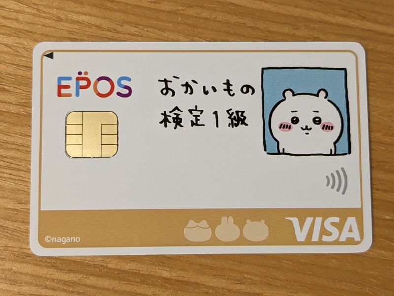 エポスカードを受け取りました。ちいかわエポス(おかいもの検定1級)にしました。モバイルICOCAチャージでポイントが付く前提で作りましたけど、付かなかったとしても、ゴールドカードにしたら選べるポイントアップショップでポイント3倍になるので、普段の買い物で使います。ゴールドカードのインビテーション(6ヶ月で50万円が目安らしい)が来るまで使ってみます。