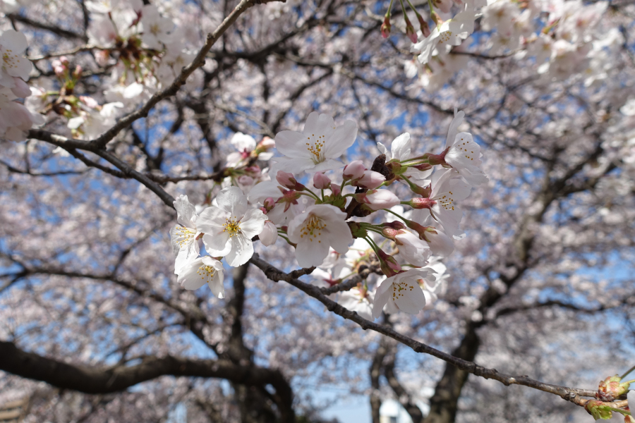 朝は花見がてら散歩してきました。桜の種類によると思いますが、満開ちょっと前で、ほぼ満開といったところでした。(写真1)(写真2)(写真3)(写真4)