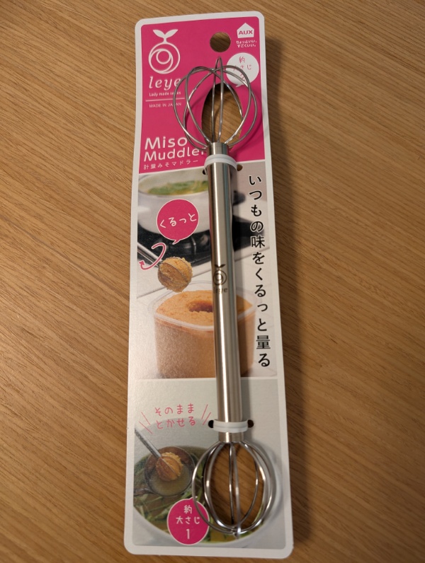 計量みそマドラー(写真)を買いました。ここのところお椀に味噌を入れて熱湯をかけて溶かす即席味噌汁を作って食べているんですが、いい感じに大さじ一杯の味噌を取るのが難しかったので買ってみました。専用道具だけあって使用感はいいですね。