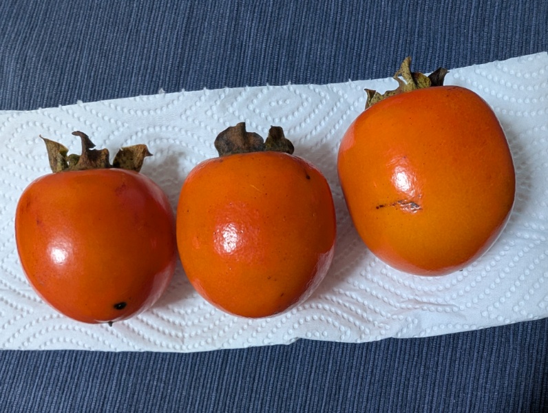 実家の柿の木からもぎ取ってきた柿を食べたんですが良い感じに熟していて美味しかったです。ただ、3個全部を一度に食べたので腹部膨張感があります。柿の食べすぎがよくないことを忘れていました。
