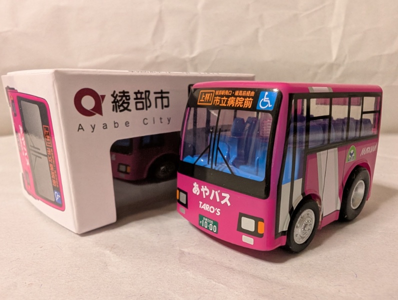 地元を走るあやバスの運行20周年を記念してチョロQが数量限定で販売開始されたんですが、無事ゲットすることができました(写真)。かわいいですね。