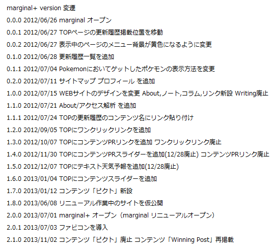 ver.2.1sの前のバージョンが気になると書いたら、早速管理人A氏がバージョン履歴を掲載してくれました。仕事が早い!おもしろそうなので、自分も作ってみようかな。
