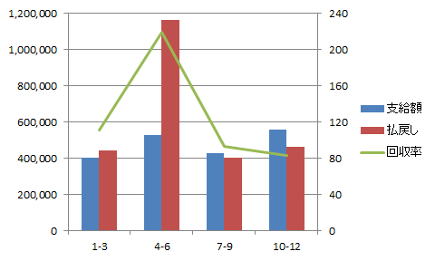 ニコ動のコミュニティで競馬の予想大会をしていまして、その結果が出ました。購入額192万1000Pに対して、払戻し247万4630Pとなりました。年間回収率128.8%は結構いい方だと思います。リアルで192万円買えていたら55万円儲かってたわけですが、そんな買い方怖くてできません(笑)