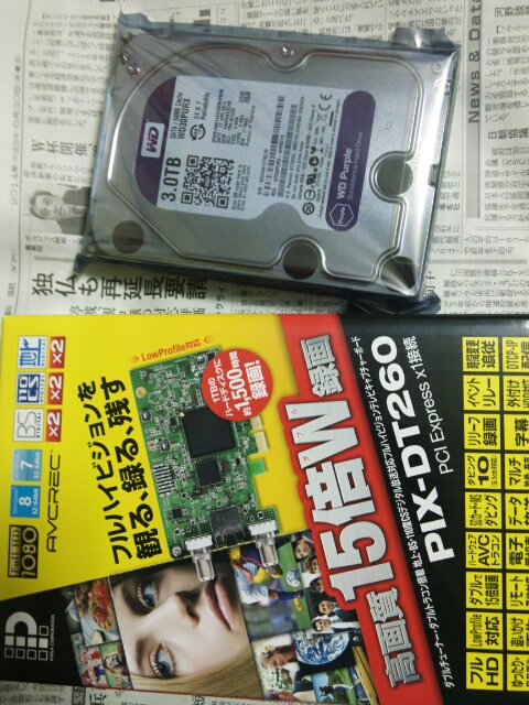 ボーナスが出たのでTVチューナーとHDDを買いました。SONYのブルーレイディスクレコーダー「BDZ-AT350S」を使っているんですが、エントリーモデルで外付けHDDを増設できないので、容量が逼迫してるんですよね。併せて、せっかくパソコン作ったのでいろいろやってみたいなということもあって購入に至りました。