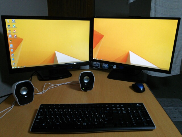 ついに念願のデュアルディスプレイにしました。テレビが壊れてからはテレビをモニタ代わりにデュアルディスプレイでしたが、今回は新たにディスプレイを買い足しました。2枚目は23型のフルHDディスプレイで、今使っているのと同じサイズです。今度のはベゼルが細くなっていて、さらに90℃回転できるモデルです。試しに縦置きにしてみたんですが、見上げる形になって使いづらかったので、横置きで使うことにしました。基本的には片方をテレビか動画にして、もう片方でネットやサイト更新ですね。動画のウィンドウとテキストエディタのウィンドウのサイズを調整しなくてもいいので楽です。ちょっとこたつからはみ出していて危ないんですが、スタンドが安定しているので大丈夫でしょう。もうテレビは処分してもいいんですが、どうやって処分するかを考えないとですね。
